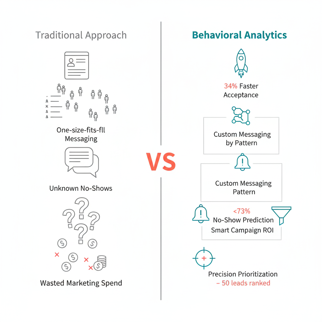 While competitors rely on basic forms and hope for the best, practices using behavioral analytics can: