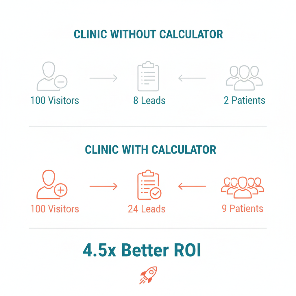 This is exactly what we do – we help implant clinics implement AI-powered price calculators that transform simple website visitors into qualified patients. Having processed over 50,000 leads, we've identified a clear pattern: clinics with integrated calculators receive 3x more quality inquiries, and their patients come to consultations already informed and ready for treatment. This approach doesn't just increase conversion – it completely changes the quality of communication between clinic and patient, reducing the number of "empty" consultations and increasing the percentage of patients who actually begin treatment.